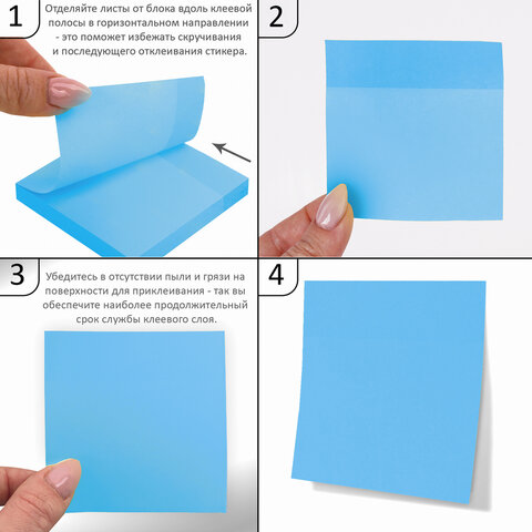 - отделяйте листы от блока вдоль клеевой полосы в горизонтальном направлении - это поможет избежать скручивания и последующего отклеивания стикера;