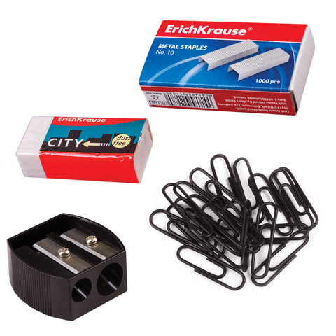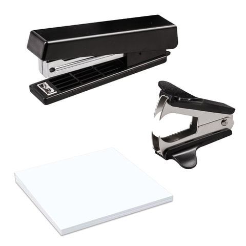 •Степлер, антистеплер, бумага для заметок, стирательная резинка.