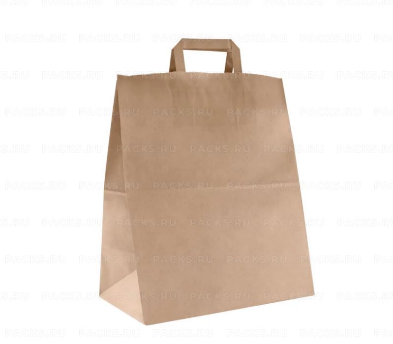 Пакет бумажный крафт с плоскими ручками 320х200х370 80гр до 5кг 200/200